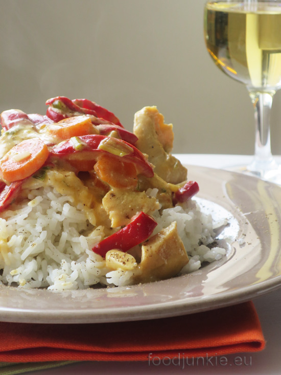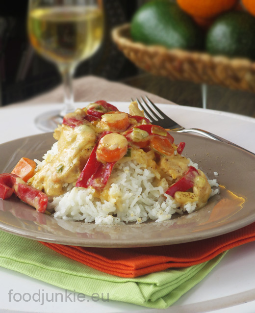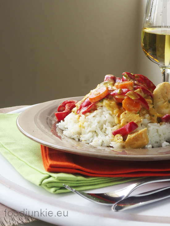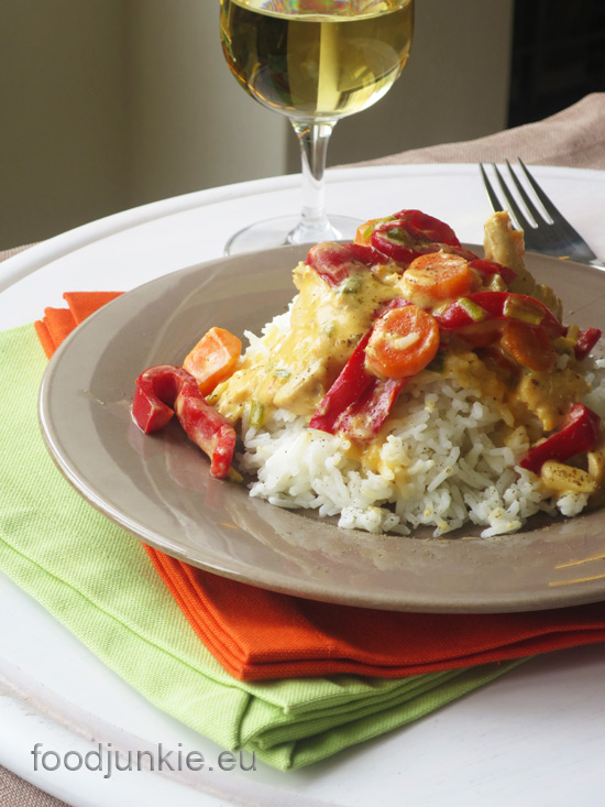 Κοτόπουλο με τυρί κρέμα, πιπεριές και καρότα