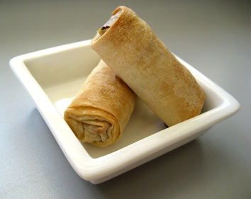 - Add one spoonfull of filling on the rectangualr sheet, brush it well with olive oil, fold the sides and roll (see pictures below). Brush each roll on top and sprinkle with sesame if you want.