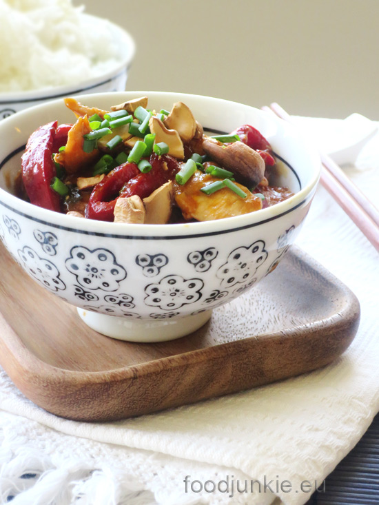 Hoi-sin chicken with red peppers and cashew nuts/ Κινέζικο κοτόπουλο με σάλτσα hoi-sin, κόκκινες πιπεριές και κάσιους