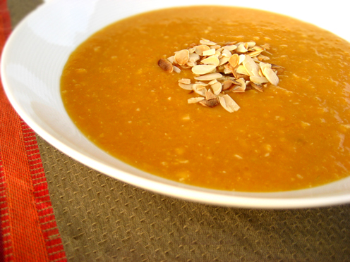 Σούπα κίτρινης κολοκύθας με αμύγδαλα και μπισκότα Amaretti