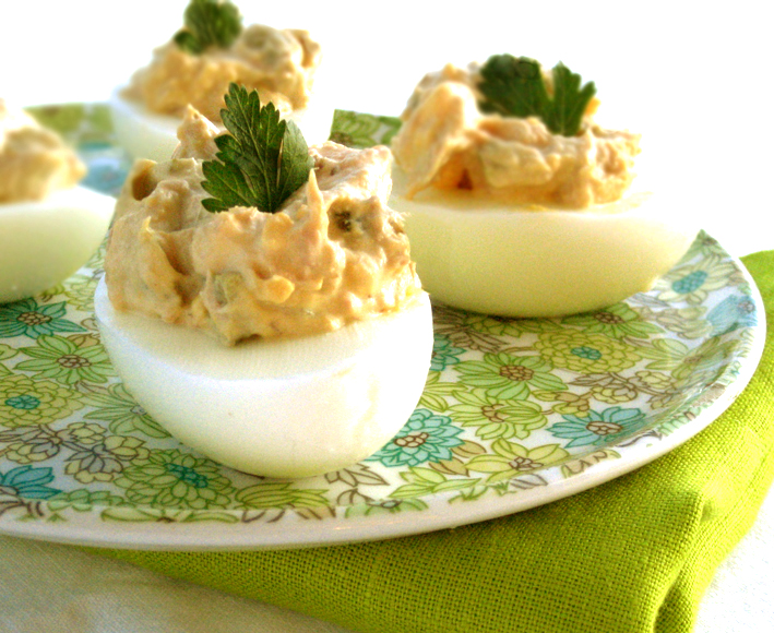 Αβγά γεμιστά με τόνο, κάππαρη και αγγουράκι τουρσί