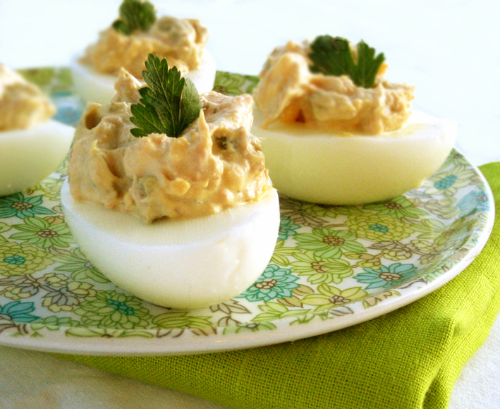 Αβγά γεμιστά με τόνο, κάππαρη και αγγουράκι τουρσί