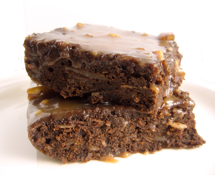 Μπράουνις σοκολάτας με σιρόπι καραμέλας και καρύδια
