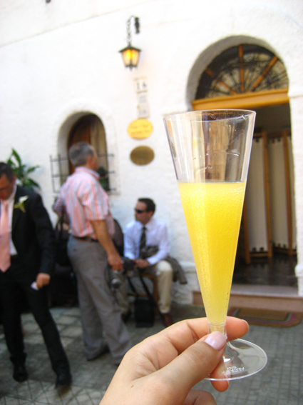 The feast started outside the bride’s house with a small buffet carrying traditional treats both savoury and sweet. Bellinis were served just before the bride came out of the house and we all followed her through the cobbled streets to the church.