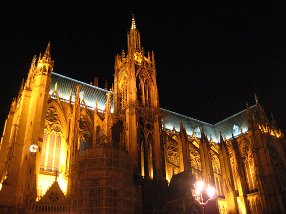 Metz (pronounced «mess») boasts beautiful yellow-stone architecture, a stunning cathedral of St. Etienne and loads of medieval cobbled streets. The town has a very lively air to it in the evening with loads of littlebars/cafes and rasutaurants with outdoor seating. Metz was also voted as the best-lit city in France, and as you can see from the pictures, it was quite something!