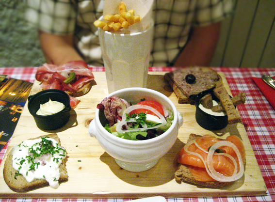 Το πρωτο μας γαλλικό δείπνο τα φάγαμε λοιπόν στο Μές, σε ένα παραδοσιακό καπηλειό ή Βινστούμπ στην τοπική διάλεκτο, που μας σύστησε ο πανδοχέας μας (La Winstub, rue de Pont des Loges, tel. 0387 37 03 93).) με λιχουδιές από την Αλσατία και τη Λοραίνη.