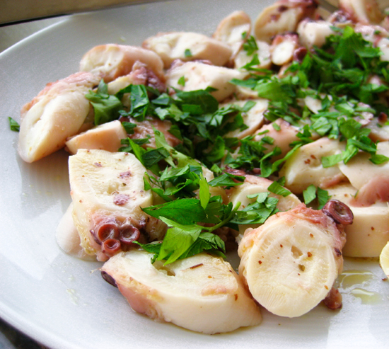 Octopus marinated in mustard and olive oil