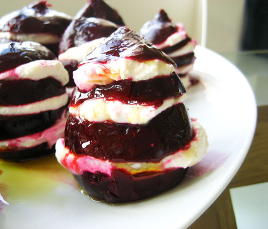 Beetroot towers with feta cream (adapted from a recipe by Mirsini Lampraki)
