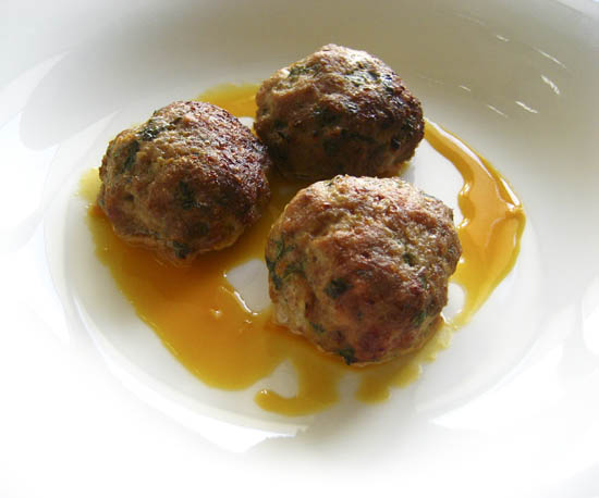 Nena’s Pork meatballs with a ginger and orange olive oil dressing