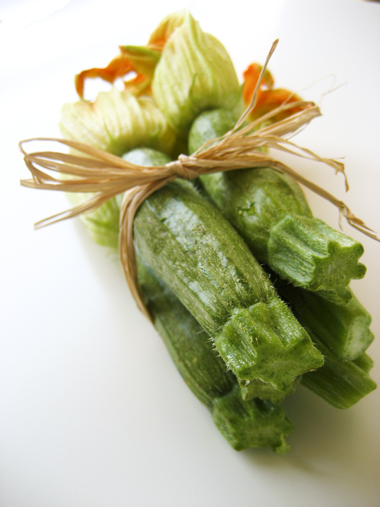 • 300γρ μικρά τρυφερά κολοκυθάκια με τους ανθούς τους (ή σκέτα τα κολοκυθάκια), τα κολοκυθάκια κομμένα σε λεπτές ροδέλες, οι ανθοί σε λεπτές λωρίδες (ζυλιέν)