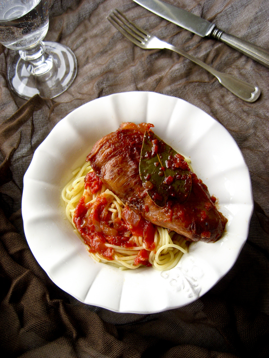 The choice of side is also up to you. I like spaghettini, the very fine spaghetti, but try it with, bulgur wheat (as they eat it in Crete), orzo or even rice. Mashed potatoes or even better french fries are also a beautiful accompaniment, but they require some of effort, so don’t make them if you are in a hurry.
