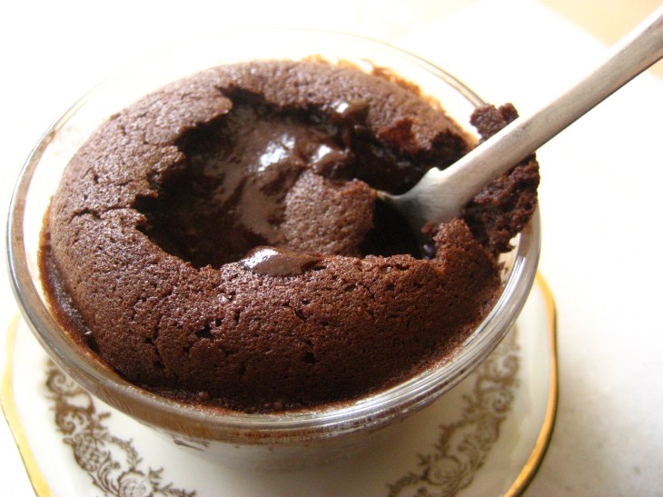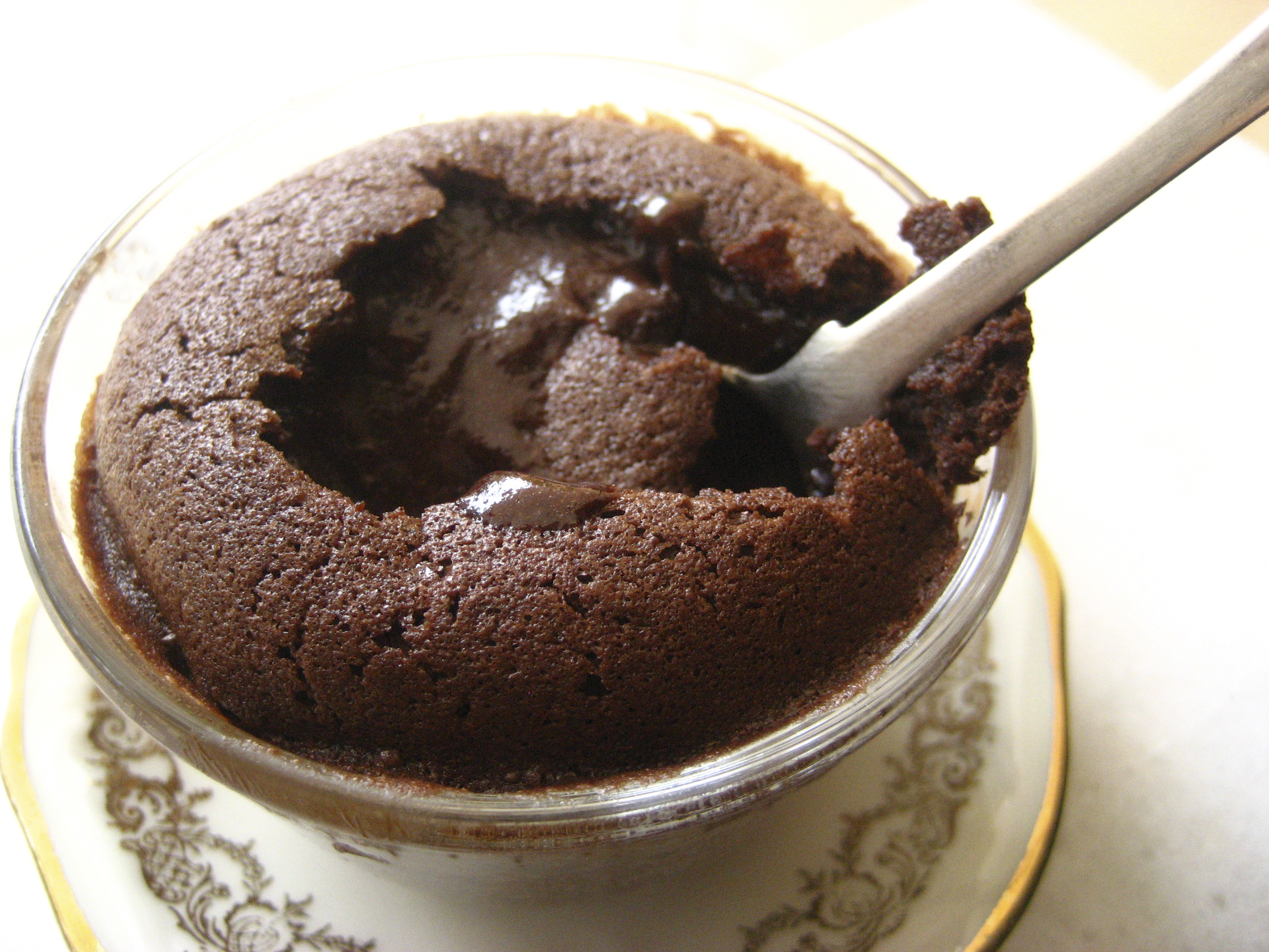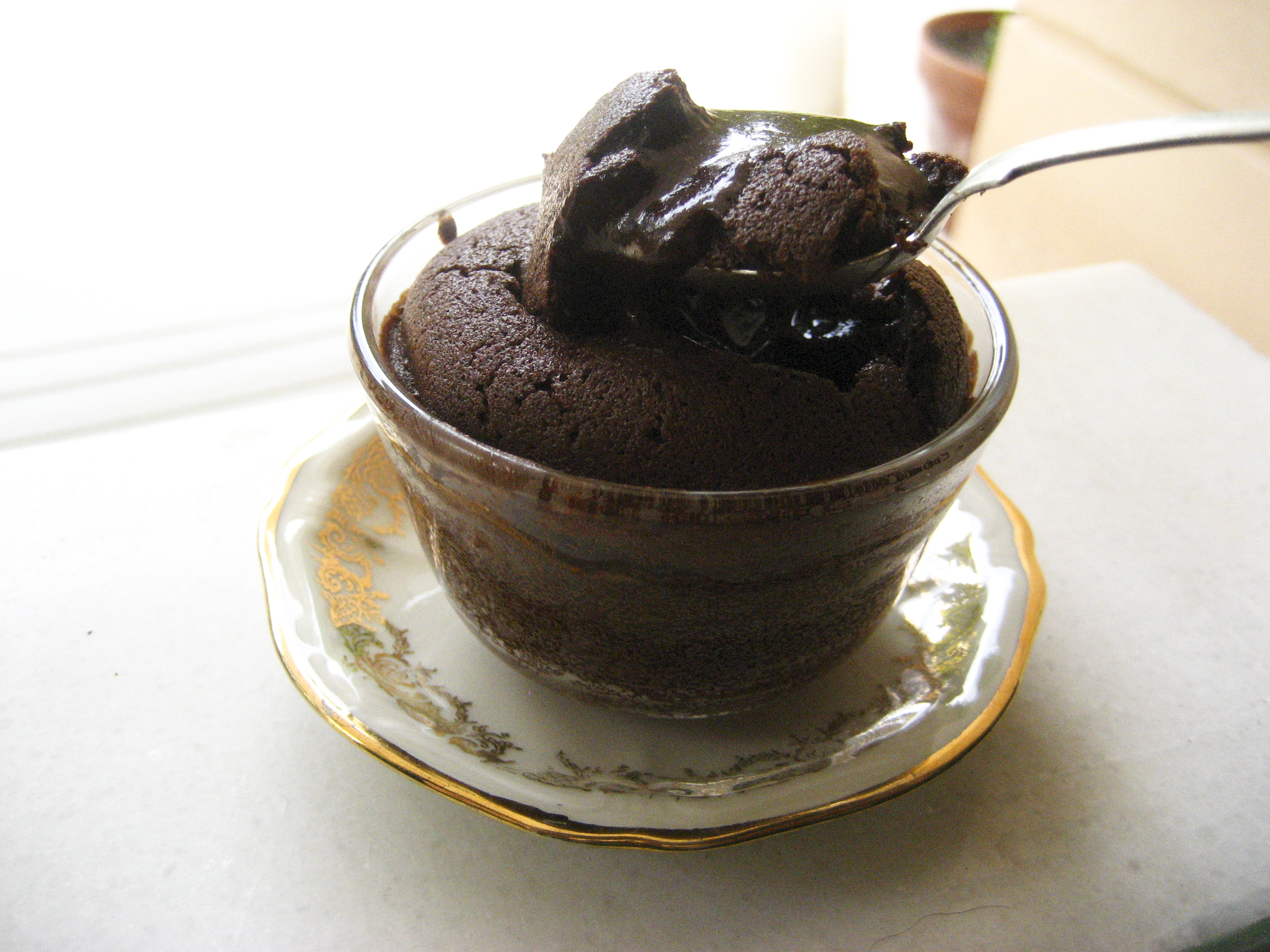 Αυτό λοιπόν το σουφλέ σοκολάτας (κανονικά λέγεται meulleux, αλλά άντε να το προφέρεις…) είναι όλα αυτά και κάτι παραπάνω. Γίνεται σαν κέικ γύρω γύρω και στη μέση μένει υγρό,  μια ηδονική πηγή σοκολάτας. Προσωπικά το προτιμώ σκέτο, αλλά μια μπάλα καλό παγωτό βανίλια στο πλάι είναι απολύτως αποδεκτή.