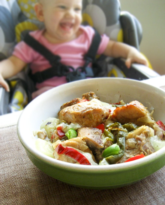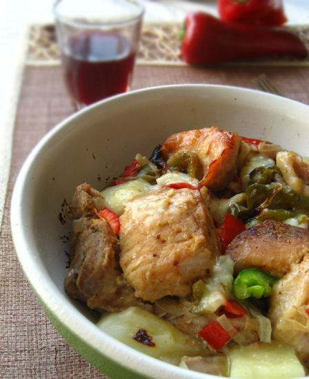 I remembered that dish when I opened my fridge two days ago and saw that the only things in there were pork «butt», peppers and cheese. Not very useful in the morning when you are looking for milk, but still it is great when one can cook dinner (lunch in our case) without rushing to the supermarket!