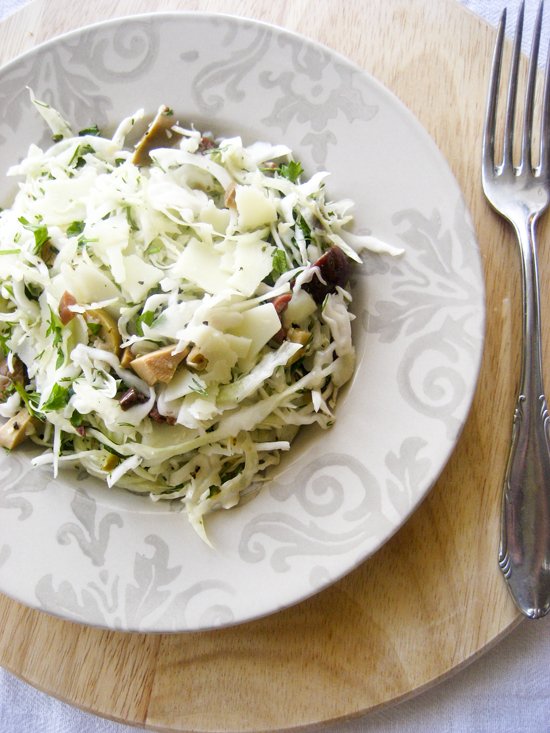Shaved Fennel, Cabbage, Olive, Onion and Graviera Salad With Red Wine–Black Pepper Vinaigrette