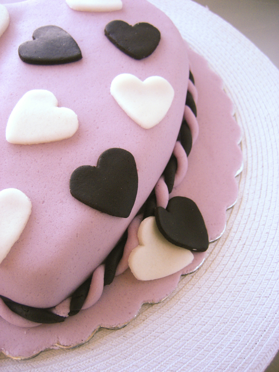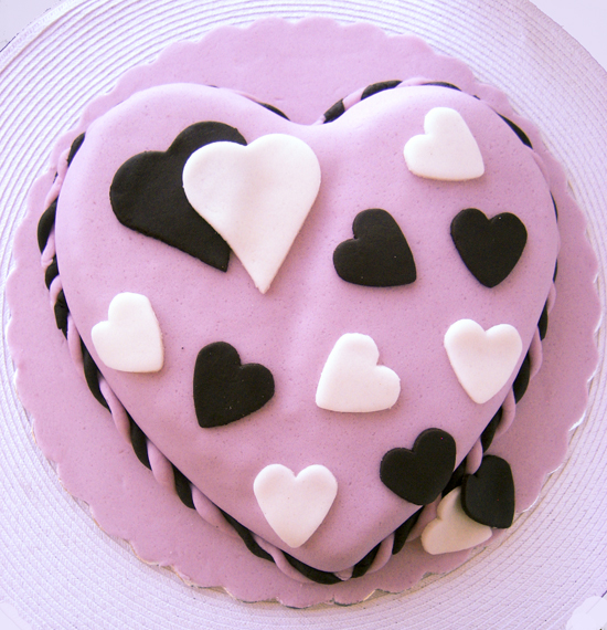 After reading my manifesto therefore I am sure you are baffled as to why I made a heart-shaped cake covered in pink fondant. Well, because I felt like it! I wanted to experiment with fondant and I have to say that the day lends itself to such projects. I also wanted to offer my readers a beautiful, chic and easy design in case they want to make something special for their valentine.