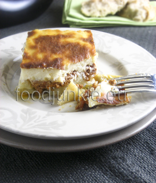 7. Bake the moussaka in an 180 oC oven for about 1 hour or until golden on top. Let it rest for at least 20 minutes before slicing, otherwise you will end up with very messy looking pieces.