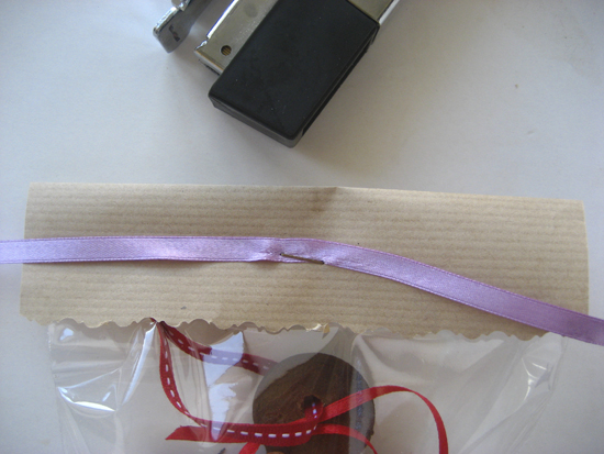 Γεμίζετε το σακουλάκι με τα μπισκότα και  το κλείνετε με το συρραπτικό  στις δύο πλευρές.