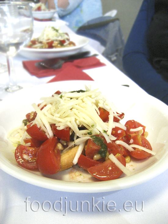 Στο τέλος της ξενάγησής μας, όπου είχαμε κυριολεκτικά πουντιάσει, παρά τα ειδικά μπουφάν που φορούσαμε, μας περίμενε ένα δροσερό, ελαφρύ γεύμα φτιαγμένο από τα χεράκια του Αλέξανδρου Παπανδρέου. Από όλα τα πιάτα που δοκίμασα αυτό που μου άρεσε και θα μοιραστώ μαζί σας ήταν ένας διαφορετικό «ντάκος» με λαδομαπαξίμαδα Κυθήρων, λαδοτύρι Μυτηλίνης, τοματίνια και πέστο. Αν δεν θέλετε να αγοράσετε έτοιμα λαδοπαξίμαδα μπορείτε κάλλιστα να φτιάξετε μόνοι σας. Επίσης αξίζει να συνδυάσετε δύο ή και τρία είδη τοματάκια αν βρείτε, γιατί έτσι θα έχετε μεγαλύτερη ποικιλία στη γεύση.