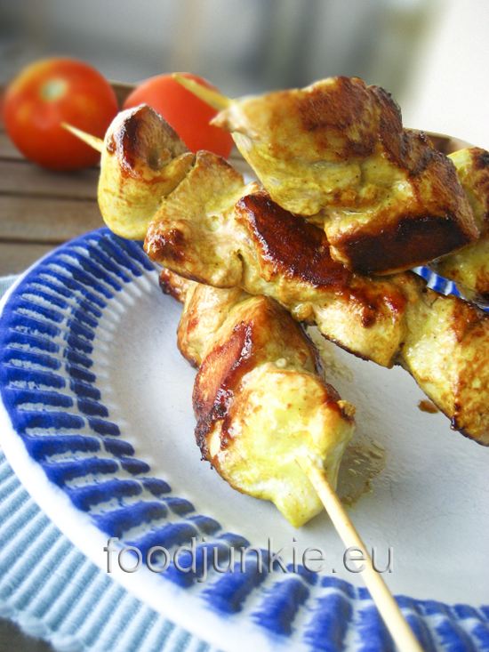 Σουβλάκι κοτόπουλο μαριναρισμένο σε γιαούρτι και κάρυ