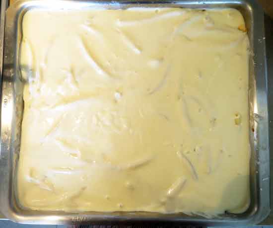 - Ρίξτε τη μπεσαμέλ προσεκτικά να πάει παντού και πασπαλίστε από πάνω λίγο τυρί.