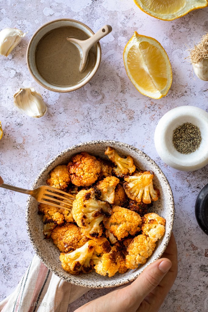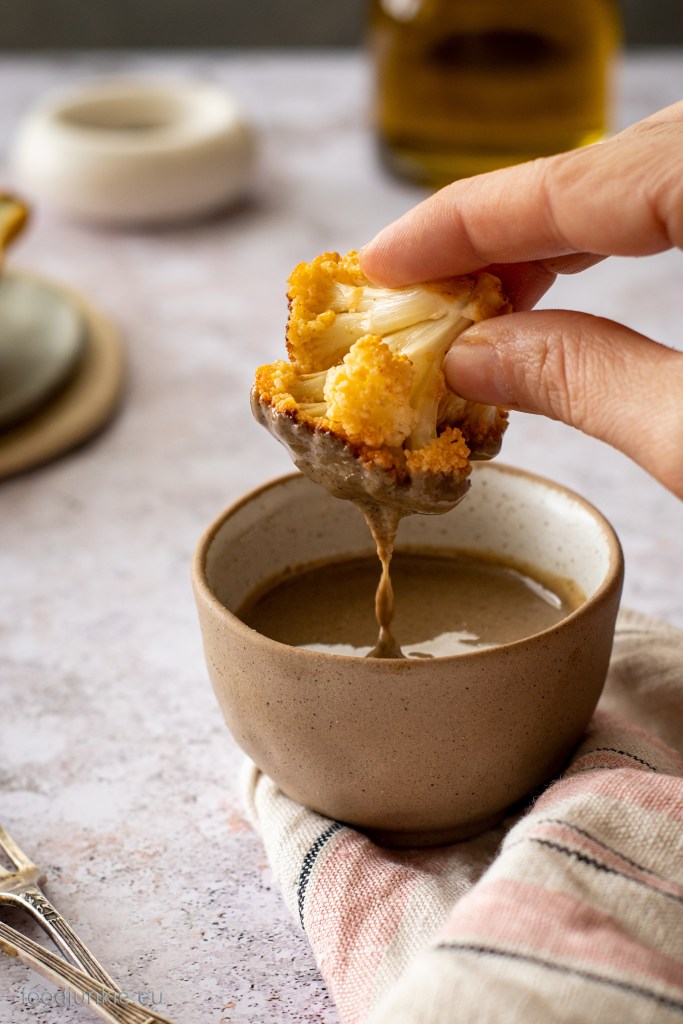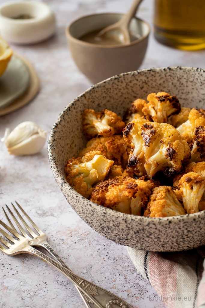 Αν αγαπάτε το κουνουπίδι και δεν το έχετε δοκιμάσει ψητό, θα με ευχαριστείτε για πάντα! Στο εξωτερικό γίνεται χαμός με συνταγές με ψητό κουνουπίδι, είτε ολόκληρο το κεφάλι, είτε έτσι σε μπουκετάκια. Είναι πανεύκολο να το φτιάξετε και θα δώσει μια ιδιαίτερη νότα στο νηστίσιμο ή μη τραπέζι σας. Αν και είναι νοστιμότατο σκέτο, προτείνω να το δοκιμάσετε με τη σάλτσα/dip ταχίνι. Είναι πραγματικά εθιστικό και τόσο -μα τόσο- υγιεινό.