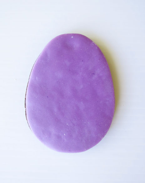 7. Κολλήστε το κομμάτι ζαχαρόπαστας πάνω στο μπισκότο με τη βοήθεια της κόλλας.
