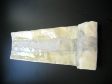 6. Κόψτε το φύλλο σας κάθετα σε λωρίδες περίπου 11×37 εκατοστά με τον κόφτη της πίτσας. Λαδώστε δύο λωρίδες φύλλο και βάλτε στην στενή της άκρη 1 κ.σ. γέμιση. Διπλώστε τις μακριές άκρες προς τα μέσα και τυλίξτε. Δείτε πώς παρακάτω. Μπορείτε και να το κάνετε με μια λωρίδα φύλλο το καθένα, αλλά οι άκρες θα πρέπει να μην αφήνουν κενό στη μέση ώστε να είναι σαν δύο φύλλα. Δεν υπάρχει χειρότερο από παπαριασμένο πιτάκι χωρίς φύλλο, οπότε για ασφάλεια βάλτε δύο!!