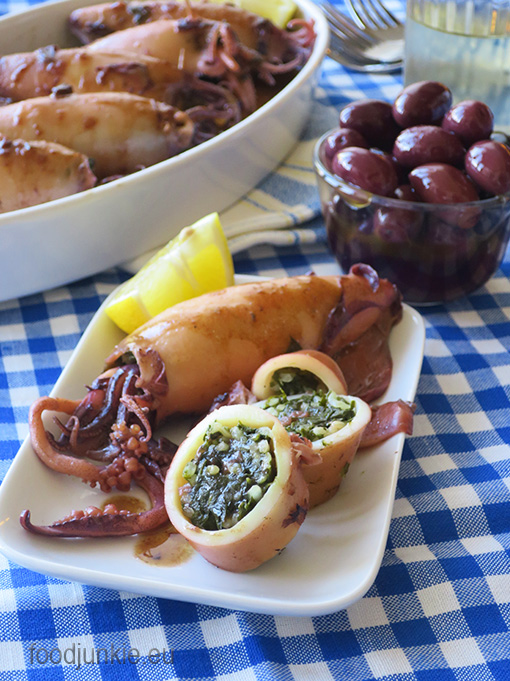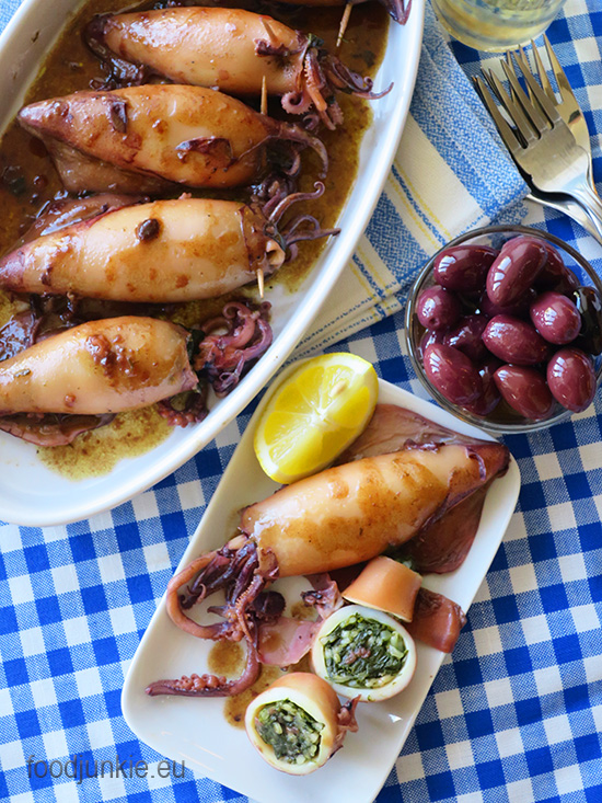 Καλαμαράκια γεμιστά με αρωματικά, χόρτα και ρύζι (νηστίσιμο)
