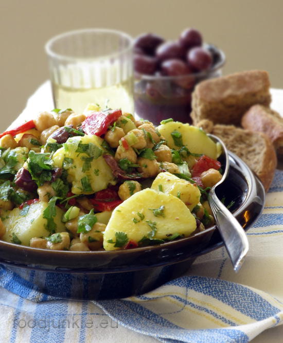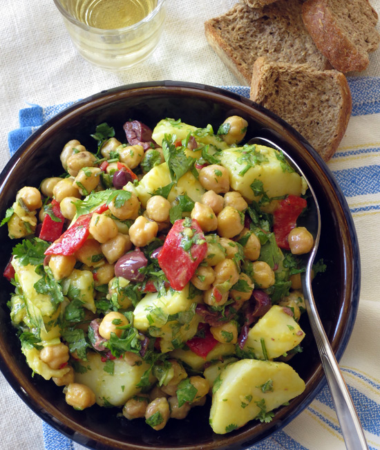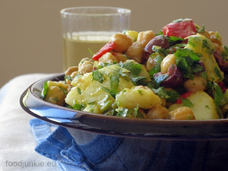 Πατατοσαλάτα με ρεβίθια, ελιές και πιπεριές