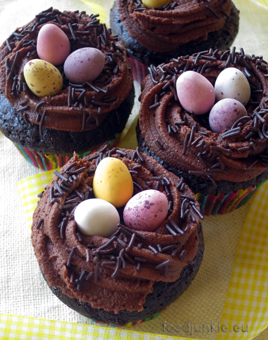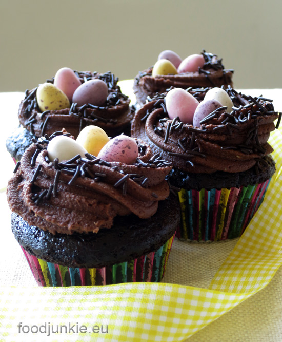 Σοκολατένια cupcakes σαν φωλιές πουλιών