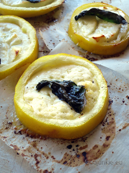 Στη σακούλα μαζί με τα υπέροχα περγαμόντα που μου έφεραν από το Δημινιό, υπήρχαν και μερικά από αυτά τα τεράστια, χοντρόφλουδα λεμόνια, σαν αυτά που βρίσκει κανείς στο Sorrento της Ιταλίας. Δεν έχω πάει στο όμορφο αυτό χωριό της γείτονος, από το οποίο προέρχεται το Limoncello, θυμήθηκα όμως μια ωραία συνταγή από τον Jamie Oliver και το βιβλίο του Jamie’s Italy. Στην ακτή του Αμάλφι λοιπόν, που είναι γεμάτη λεμονιές,  περιγράφει πώς αυτά τα χοντρόφλουδα λεμόνια τα κόβουν σε φέτες, τα αδειάζουν από τη σάρκα τους και τα γεμίζουν με μοτσαρέλα, αντζούγια και ντομάτα. Σκέφτηκα λοιπόν να κάνω κάτι παρόμοιο, αλλά πιο απλό, με το αγαπημένο μου Ταλαγάνι Μεσσηνίας, ένα τυρί παραδοσιακό μεν, καινούριο δε.