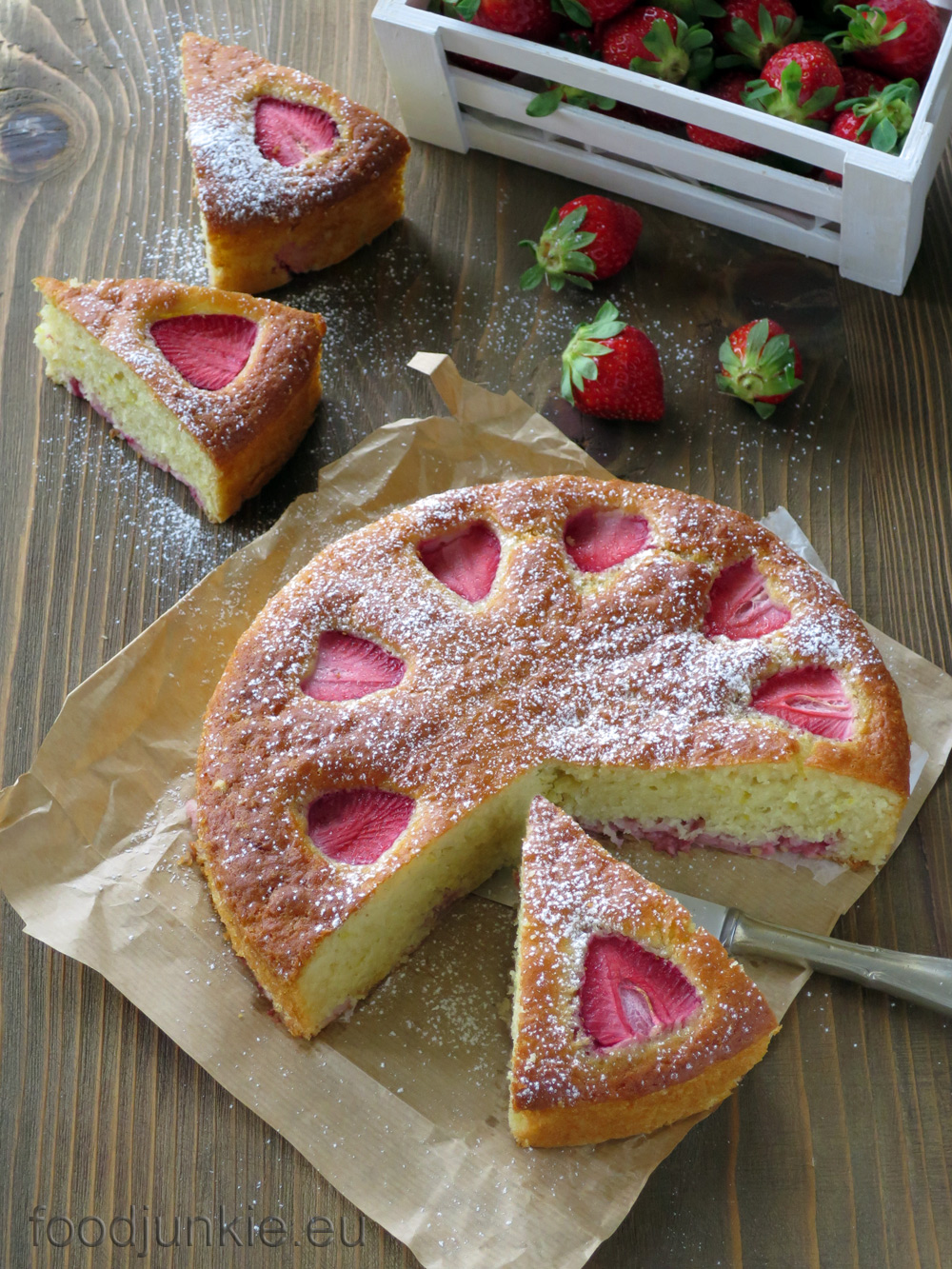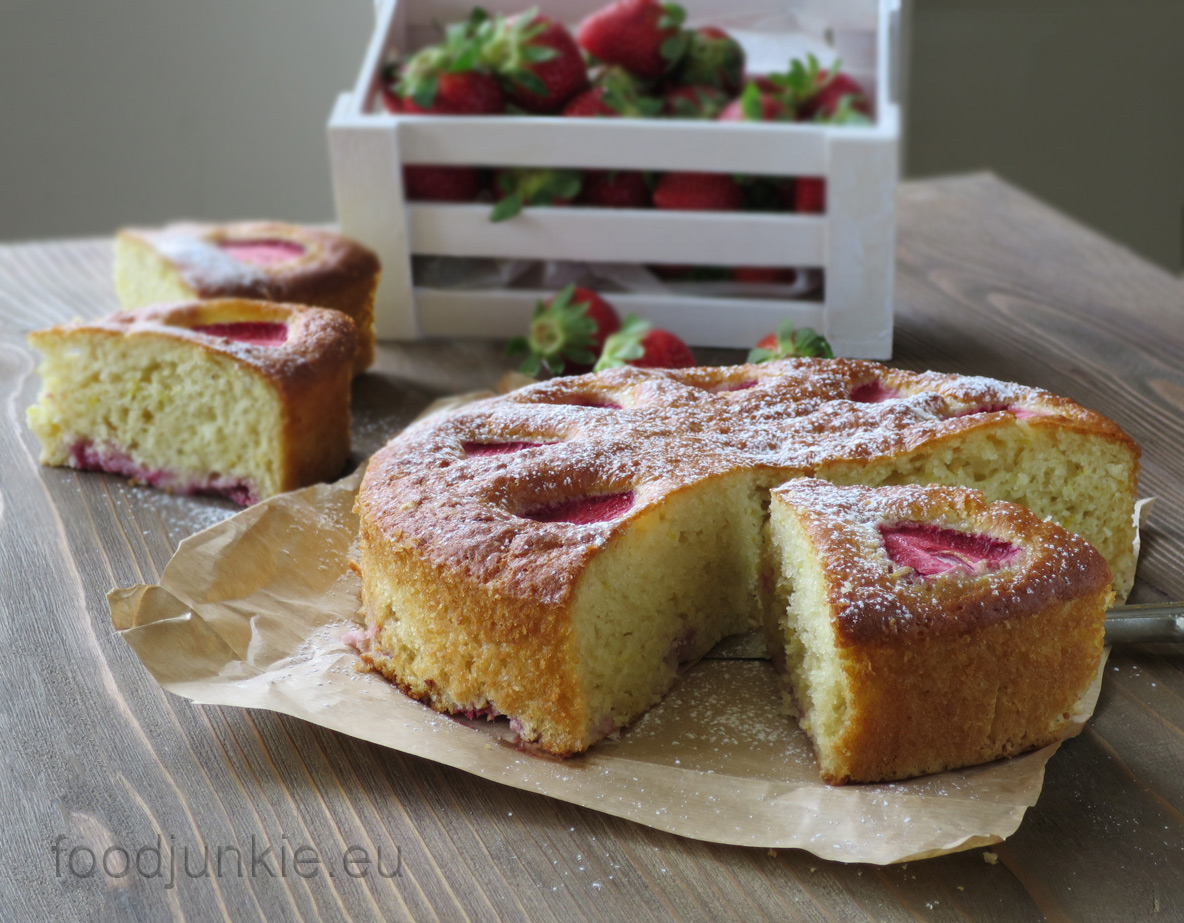 Κέικ με ελαιόλαδο, γιαούρτι και φρέσκες φράουλες