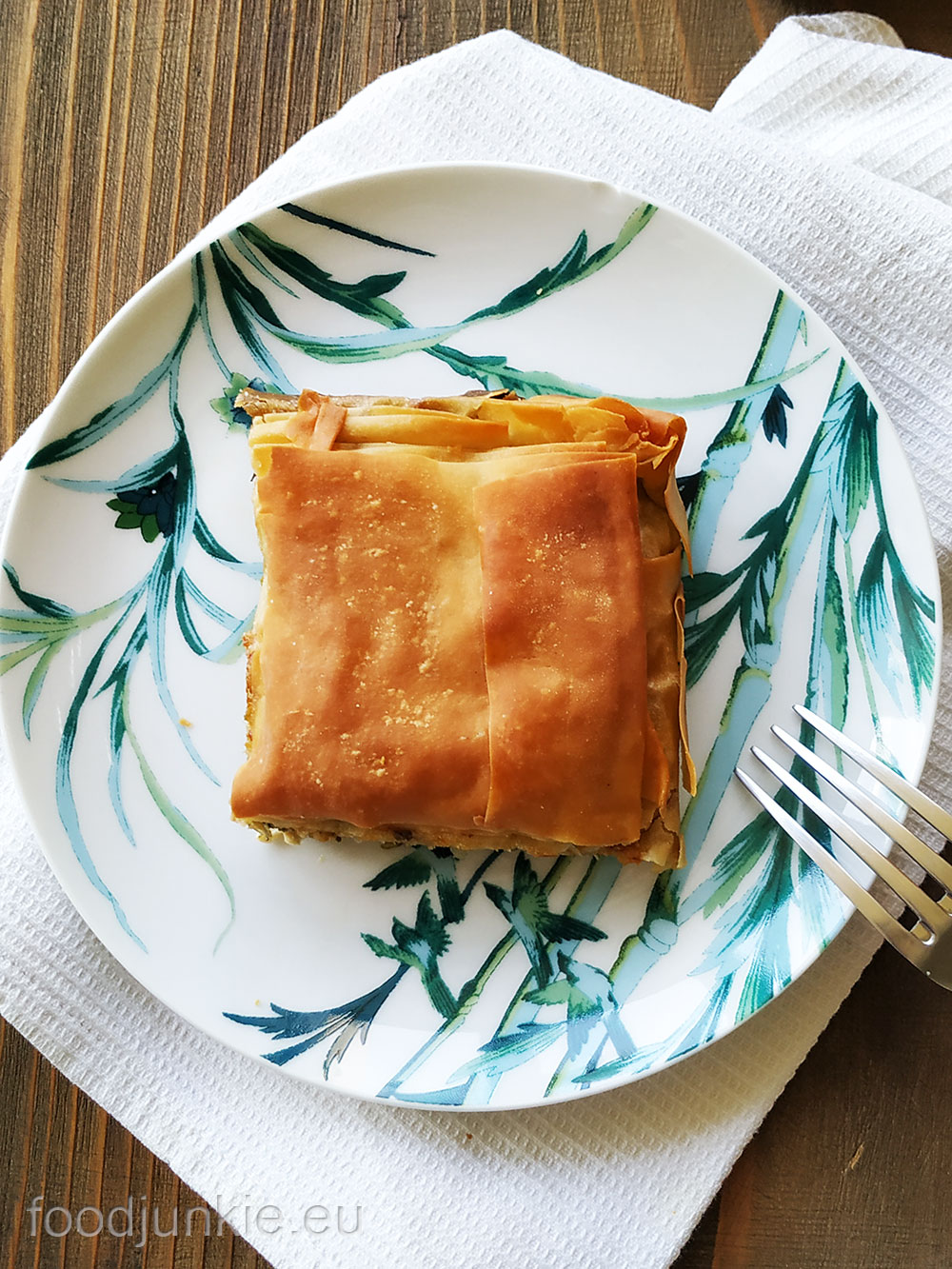 Όσον αφορά το φύλλο, ένα καλό χωριάτικο του εμπορίου είναι μια χαρά. Αν θέλετε να δοκιμάσετε να φτιάξετε δικό σας, αυτή η συνταγή είναι νόστιμη, αλλά και αυτή που είναι πιο εύκολη. Ίσως να ταίριαζε και το κρούστας. αλλά δεν το προτιμώ.