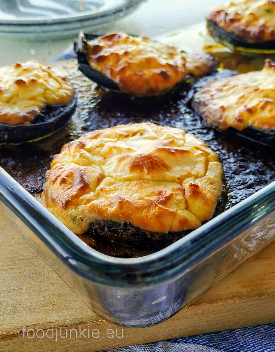 Εντάξει, σκεφτηκα να σας δώσω άλλη μια συνταγή με ντομάτες, γιατί τον Αύγουστο είναι στα καλύτερά τους, αλλά είπα να αλλάξουμε λίγο πλεύση. Λοιπόν το φαγάκι αυτό το σημερινό μου βγήκε έτσι κατά τύχη και έγινε λουκούμι. Είχα τα πορτομπέλο και κάτι ημιθανή μυρωδικά στο ψυγείο, λίγο βούτυρο και ελάχιστη φέτα, ένα αβγό και λίγο γιαούρτι. Ε, λοιπόν, μεγάλη επιτυχία! Και για μεζέ το βγάζεις, και κυρίως γίνεται με σαλάτα, αφήστε που μέχρι και burger τα κάνεις τα μανιτάρια! Γινεται γρληγορα και έχει πλούσια γεύση χωερίς να είναι βαρύ. Δηλαδή τέλειο, χειμώνα-καλοκαίρι.