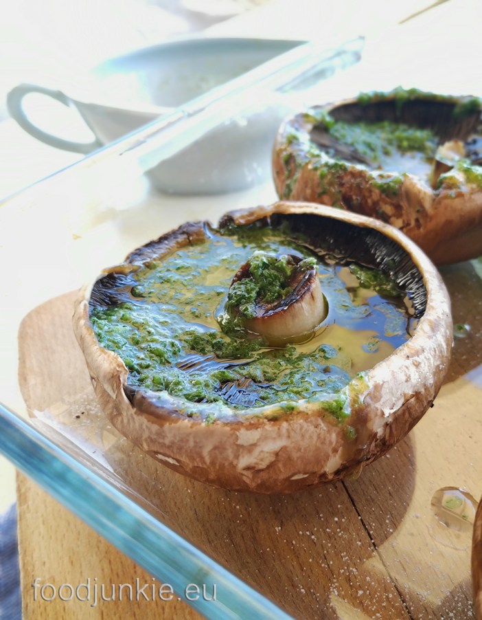 Μανιτάρια πορτομπέλο με σκορδάτο βούτυρο, μυρωδικά και φέτα
