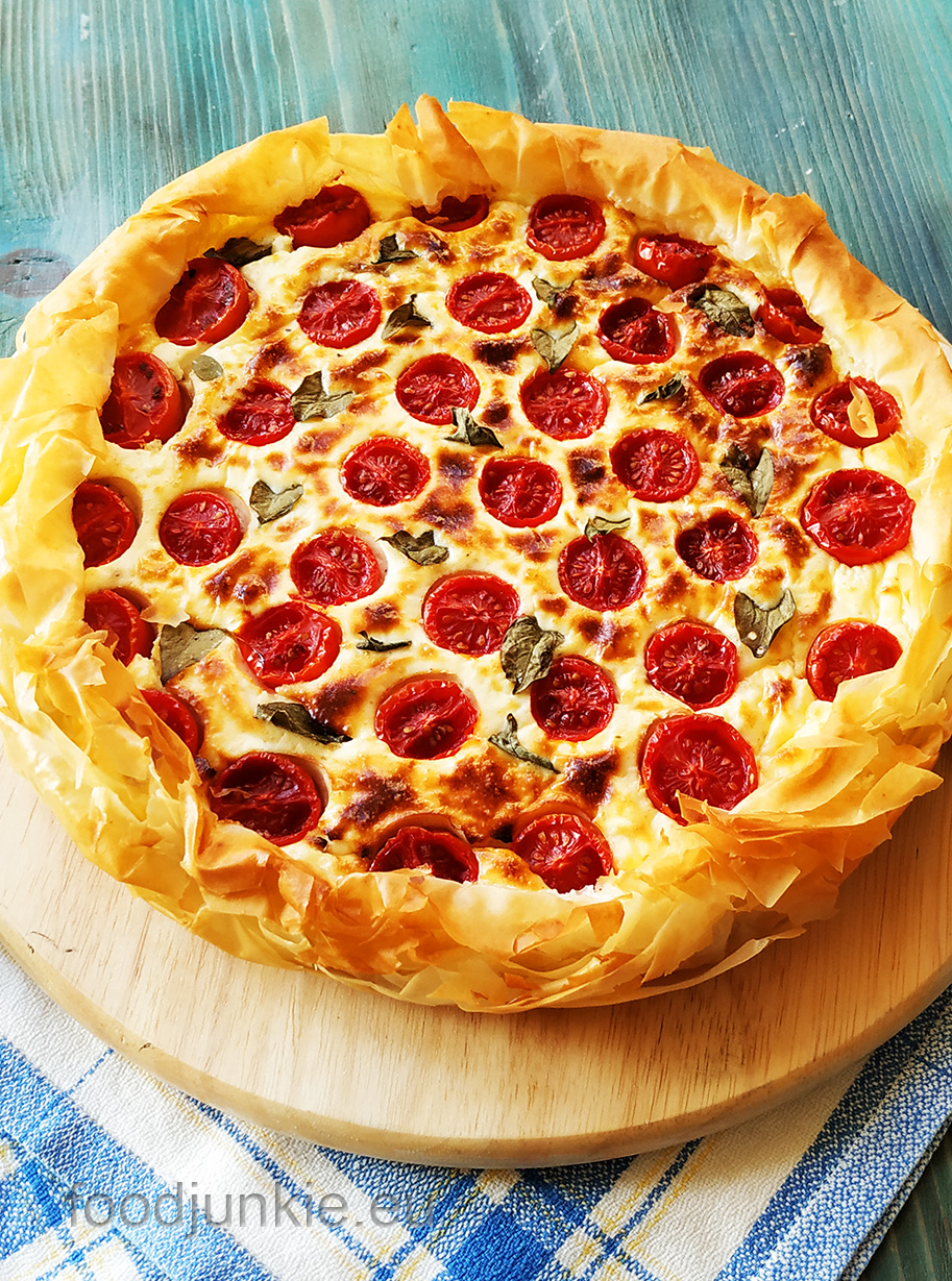 Τάρτα με ντοματίνια, φέτα και βάση από φύλλο κρούστας