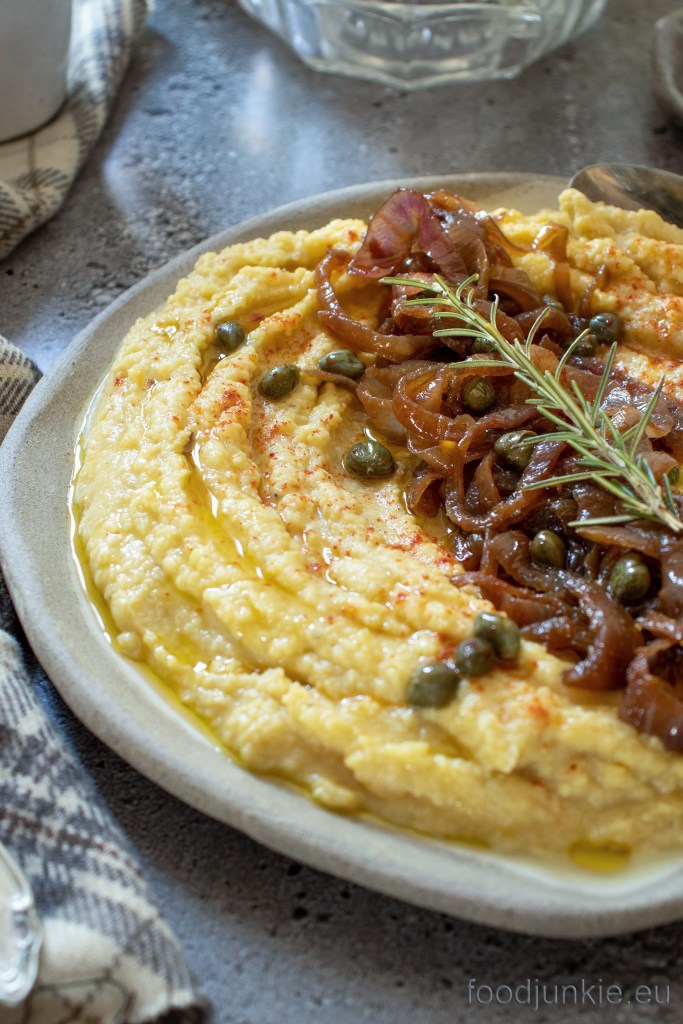 Greek yellow split peas with caramelized onions