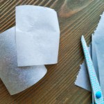 - Κόψτε μικρά κομμάτια λαδόκολλας (περίπου 7×7 εκ.) και καλύψτε την επιφάνεια της κάθε τάρτας. Γεμίστε τα με φασόλια μικρά ή φακές (εγώ τα μαζεύω ξανά τα ψημένα φασόλια για άλλη περίσταση).