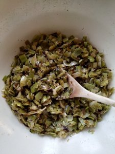 - 6-7 πράσα, καθαρό βάρος περ. 700 γρ (από 1300 πριν το καθάρισμα) μόνο το λευκό μέρος, ψιλοκομμένα