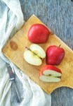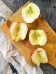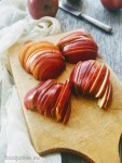 - Ετοιμάστε τα μήλα. Πλύντε τα μήλα, κόψτε τα στη μέση, καθαρίστε τα κοτσάνια και τα κουκούτσια και κόψτε τα σε πολύ λεπτές φέτες. Εγώ κρατάω τη φλούδα για ομορφιά, εσείς επιλέξτε τι θα κάντε.