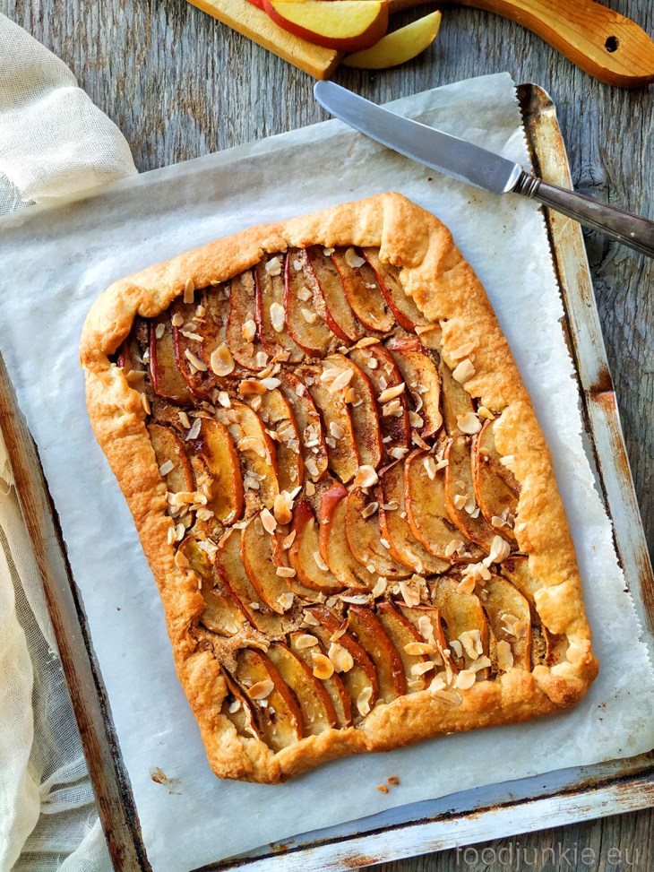- Ψήστε για 40 περίπου λεπτά, μέχρι η ζύμη να χρυσίσει και να ψηθούν τα μήλα. Στο τέλος εγώ την ακούμπησα στον πάτο του φούρνου για να γίνει έξτρα τραγανή (για 5-6 λεπτά).