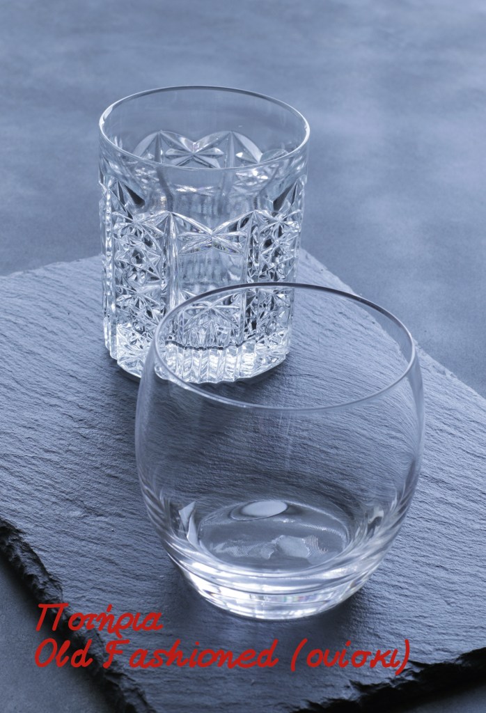 Ποτήρια Old Fashioned: γνωστά σε μας και ως ποτήρια του ουίσκι, τα old fashioned ποτήρια είναι κοντά με χοντρό πάτο. Χρησιμοποιούνται σε straight (σκέτα) ποτά με ή χωρίς πάγο, αλλά και σε κοκτέιλ όπως το…old fashioned, το negroni, η caipirinha και άλλα.