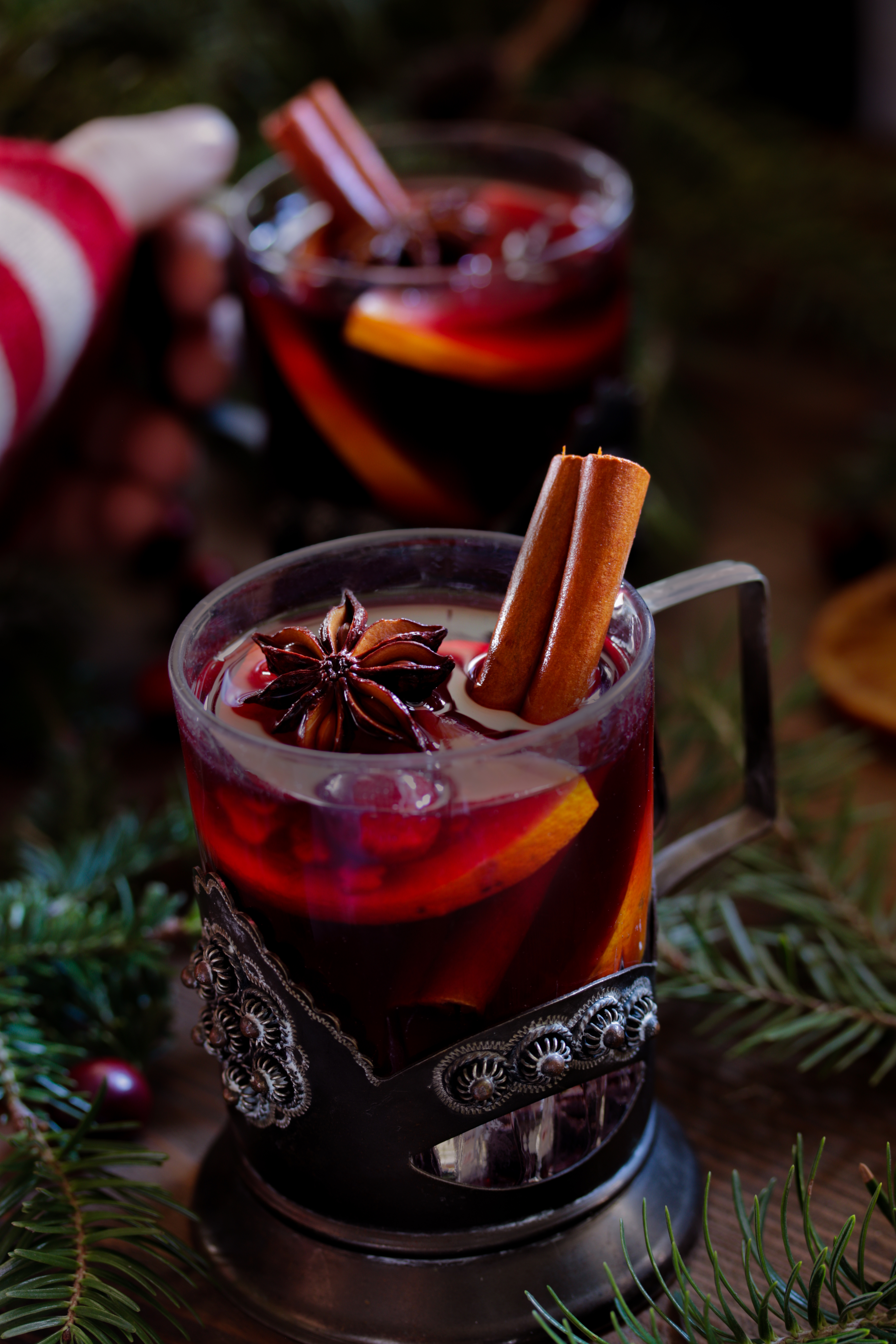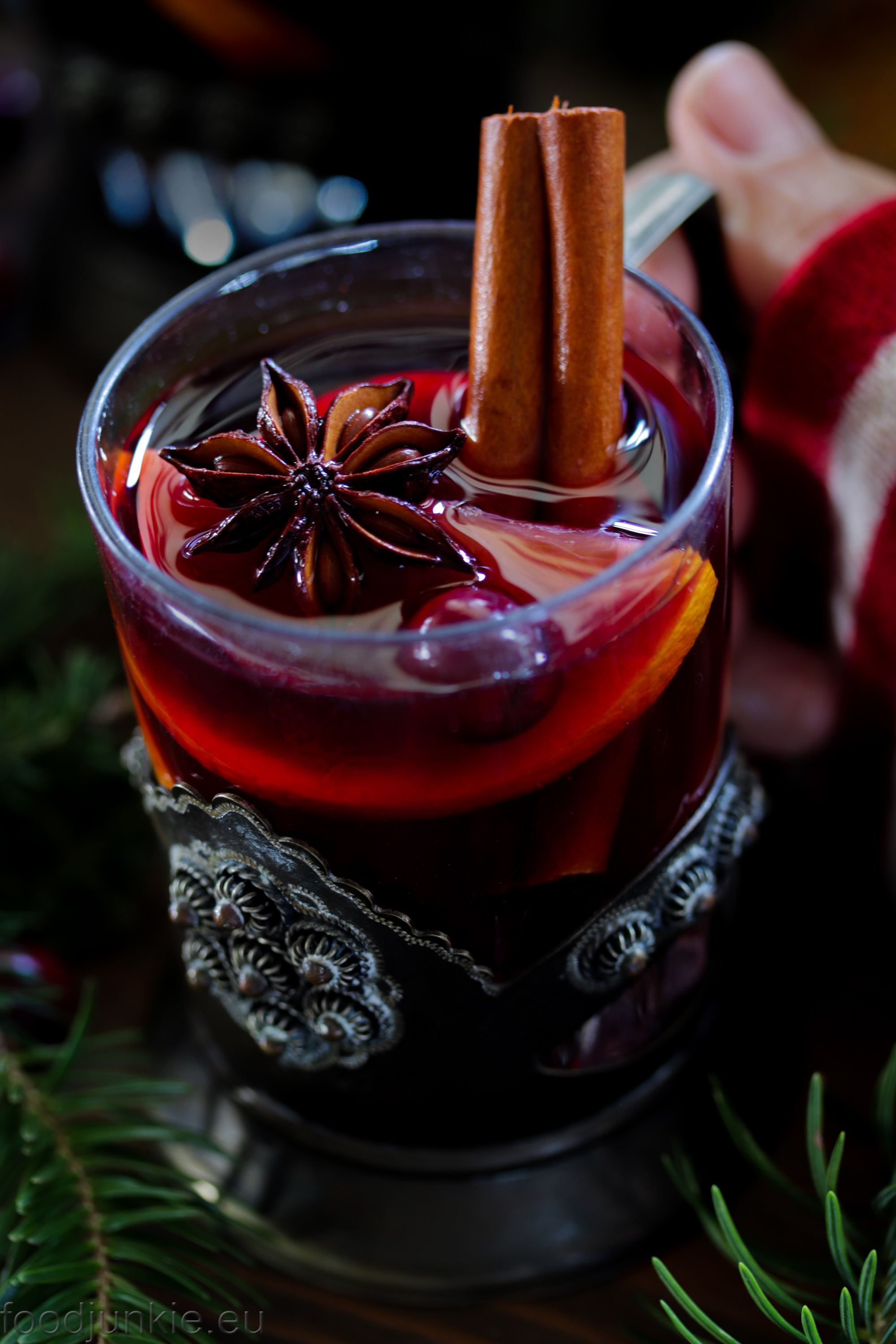 Η πεθερά μου που είναι Φινλανδέζα πάντα σερβίρει γλυκό ζεστό κρασί την παραμονή των Χριστουγέννων στο οικογενειακό τραπέζι. Δεν δίνει σημάσια στις ποσότητες, απλά ρίχνει σίγουρα μέσα πορτοκάλι, κάρδαμο, κανέλα και γαρύφαλλο, ενώ στα ποτήρια βάζει σταφίδες και αμύγδαλα, όπως κάνουν γενικά στη Σκανδιναβία. Εγώ σας έχω κι άλλες επιλογές για την παρουσίαση και τα μπαχαρικά, που τελικά είναι λίγο προσωπική υπόθεση.