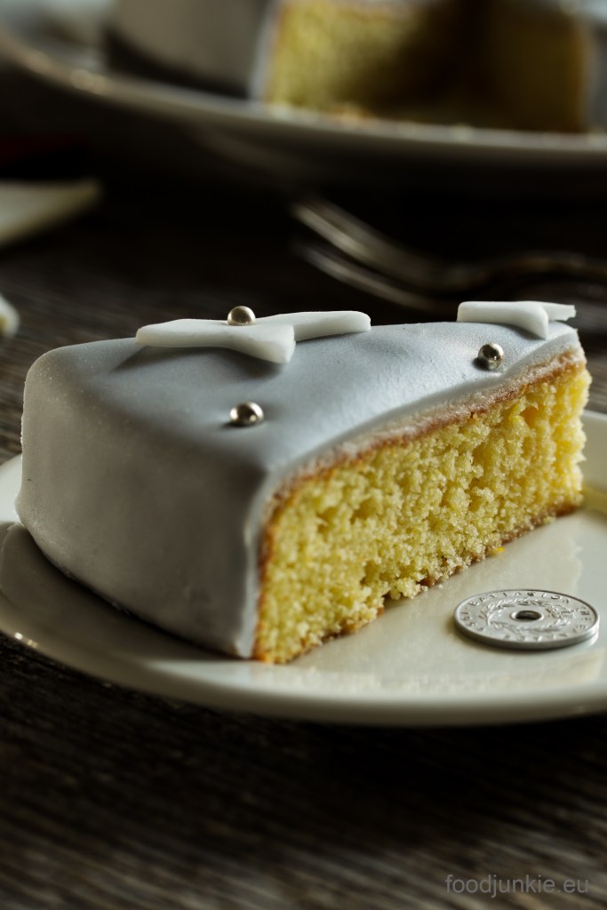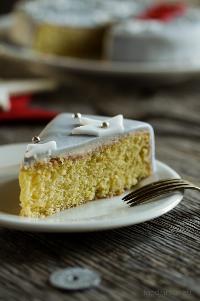 Μπορείτε εννοείται να την πασπαλίσετε με άχνη ζάχαρη κλασικά, όμως θα σας δείξω και πως την διακοσμώ τα τελευταία χρόνια με ζαχαρόπαστα. Είναι μπελάς, το ξέρω, αλλά αξίζει, αν το κάνετε κέφι! Ζαχαρόπαστα φτιάχνω τη δική μου πάντα (εκτός από το κόκκινο και το μαύρο) και τη συνταγή θα τη βρείτε κι αυτή στο τέλος.