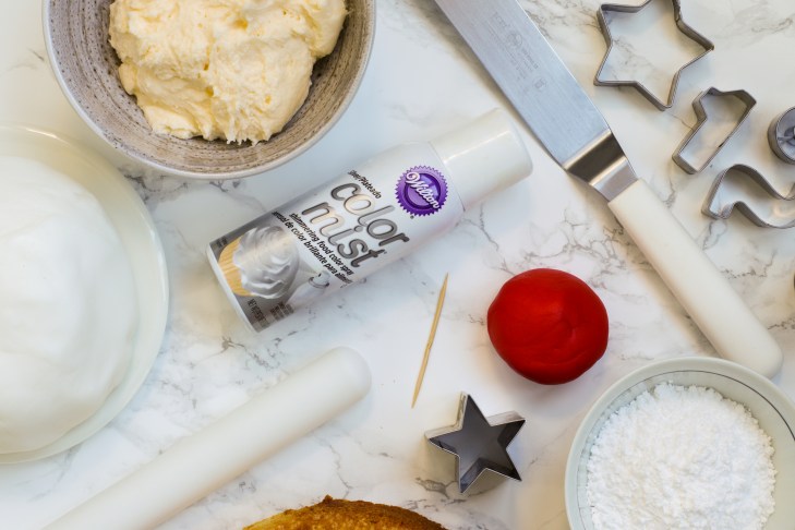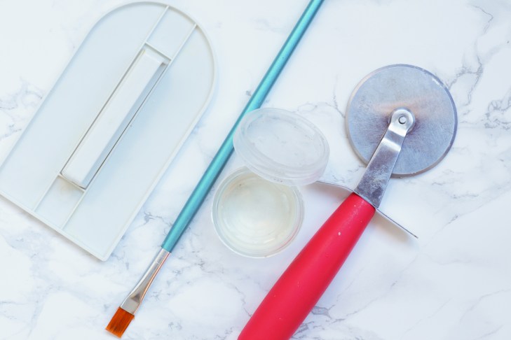 Καλό είναι να έχετε και ένα πινέλο, το ισιωτήρι ζαχαρόπαστας και ένα μικρό δοχείο με νερό.