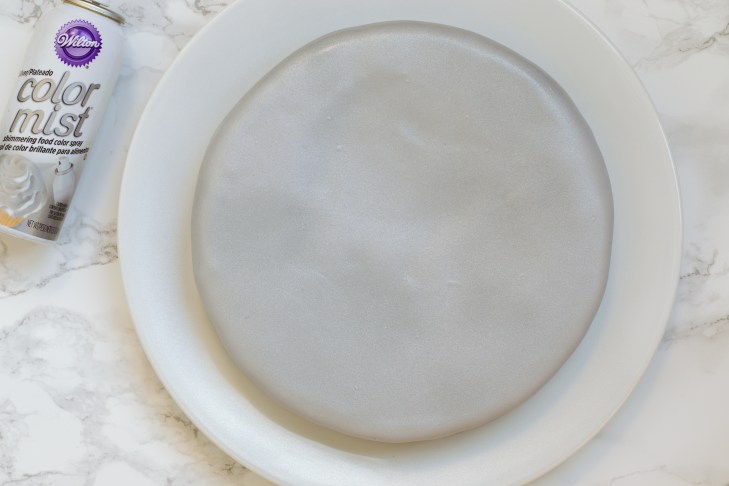 Με μια οδοντογλυφίδα χρωματίστε τη ζαχαρόπαστα με ειδικό χρώμα ζαχαροπλαστικής σε πάστα (όχι υγρό). Εγώ επέλεξα να την κάνω γκρι. Μπορείτε να την αφήσετε και λευκή και να κάνετε χρωματιστά τα υπόλοιπα σχέδια.