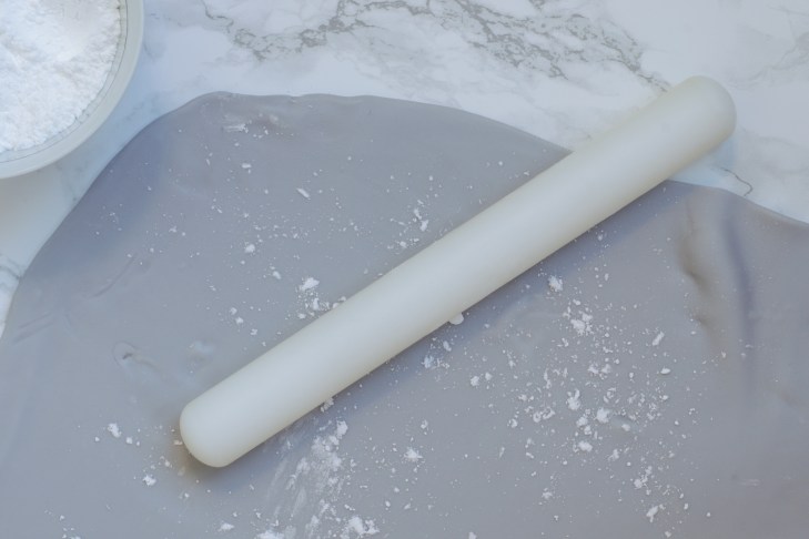 Πασπαλίστε τον πάγκο σας με άχνη ζάχαρη και ανοίξτε τη ζαχαρόπαστα σε λεπτό φύλλο. Αν κολλάει στον πλάστη, ή στον πάγκο, αλείψτε τον με λίγο σπορέλαιο.