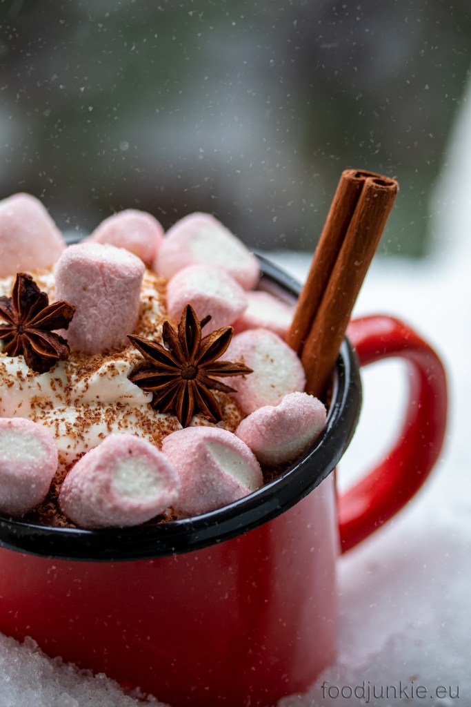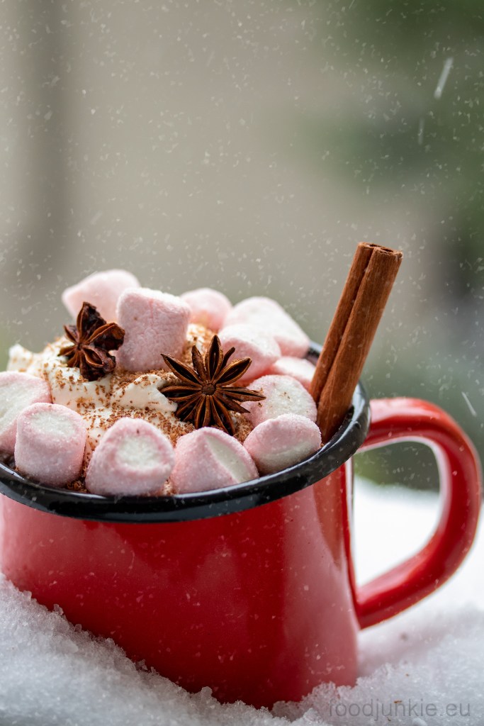 - Ρίξτε το μίγμα σε μια μεγάλη κούπα (αφού πρώτα αφαιρέσετε τα μπαχαρικά) και γαρνίρετε με marshmallows ή και σαντιγί.